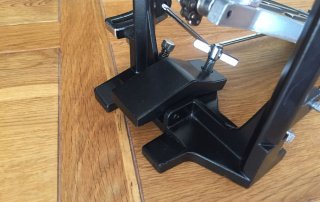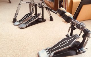 A group of vintage (ish!) P880 Pearl pedals from the early 90’s restored to a match and brought back to glory. All the pedals were stripped, cleaned, prepped, painted and oiled. All parts were checked for function and changed if required. The hi-hat never existed with this footboard so it’s been custom made to match the set from a black label 90’s double braced version. All ready for that vintage MLX restoration…